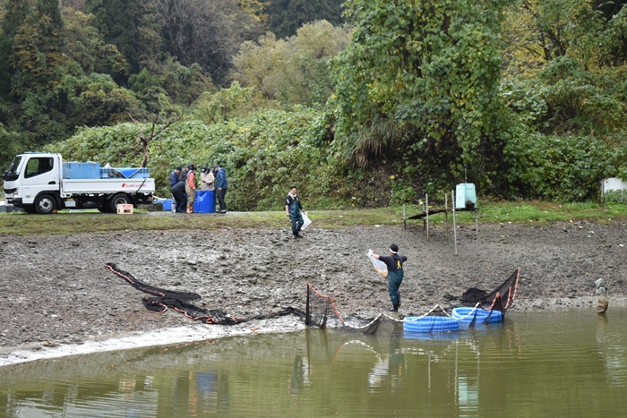 | <2025年 池揚げ開始> 三歳、雄、メインジャンボ池〜池揚げ終了まで順次アップしていきます。 いよいよ池揚げスタート 真夜中の水抜きからスタート 猪や熊、夜の作業は危険です 神奈川県、第二野池 新潟、初の網引きは当歳池から 毎年、猪の被害が深刻です。 後数十センチで池が決壊していました 夏の季節はこの池から蛍が舞い上がります 綺麗な銀鱗丸点昭和が揚がりました 五色も明るい緋が付きました 〜〜〜〜〜〜〜〜〜〜〜〜〜〜〜〜〜〜〜〜〜〜〜〜 11月 メイン池揚げが完了しました 当日は冷たい雨の中、合間を縫っての池揚げとなりました 清酒にてお清め サイズも大きいため一回で採れました 半年ぶりの再開 皆、太くなってます 眼力鯉も83cmになりました 5歳 83cm 〜〜〜〜〜〜〜〜〜〜〜〜〜〜〜〜〜〜〜〜〜〜〜〜 野池の片付けと雪の養生 11月21日 3歳池揚げの後の野池の片付けに向かいました 例年この時期に振ることは珍しく大雪の予感がします |
